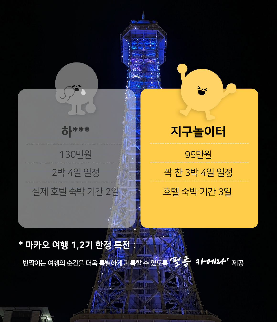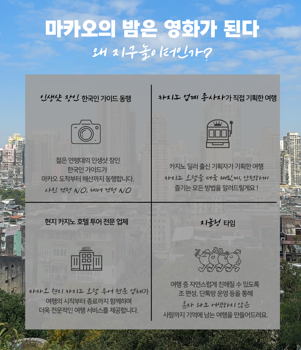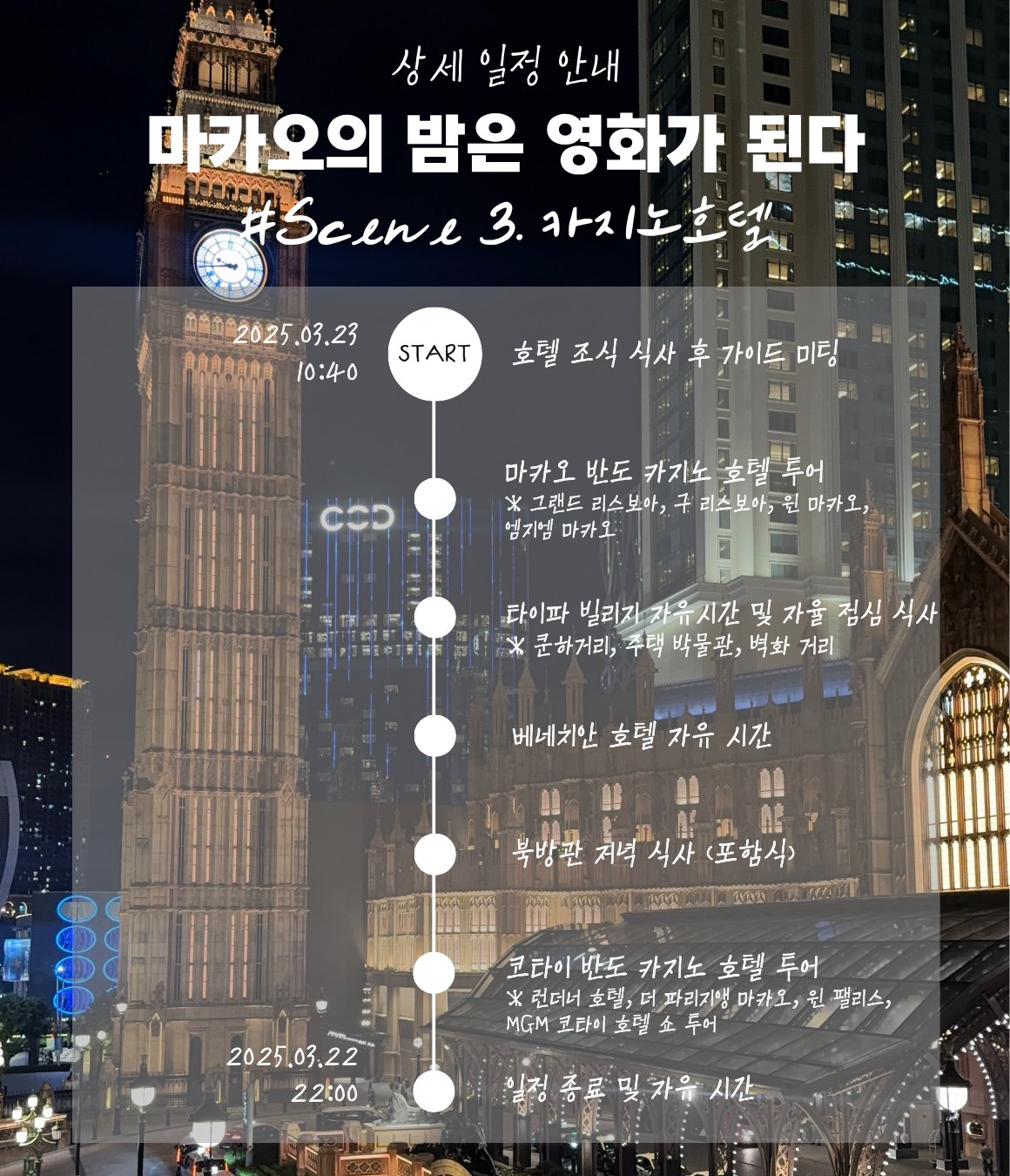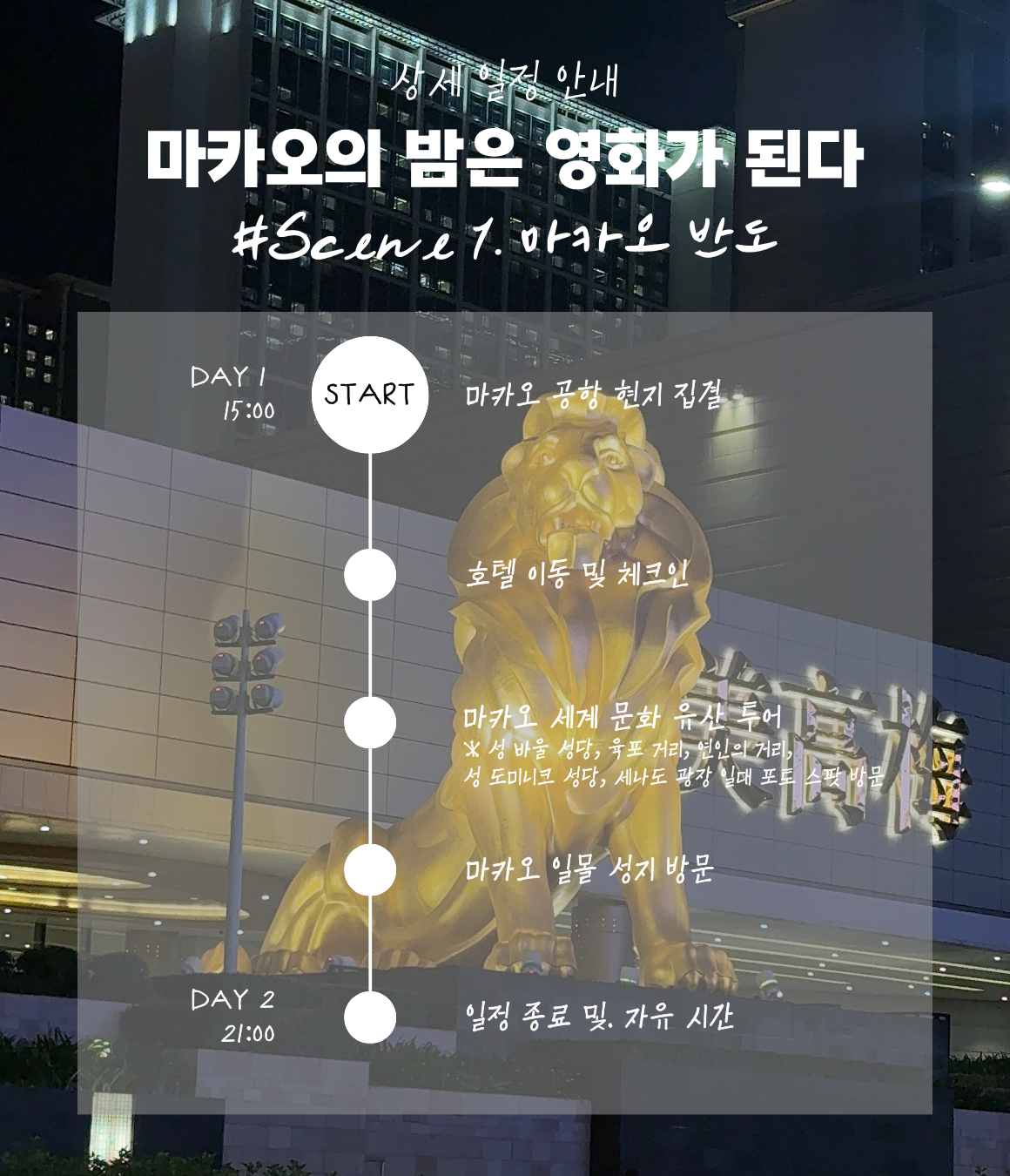 ✔ 한국에서 함께 출발하는 것이 아닌 정해진 시간에 마카오 공항에서 집결하는 일정입니다.