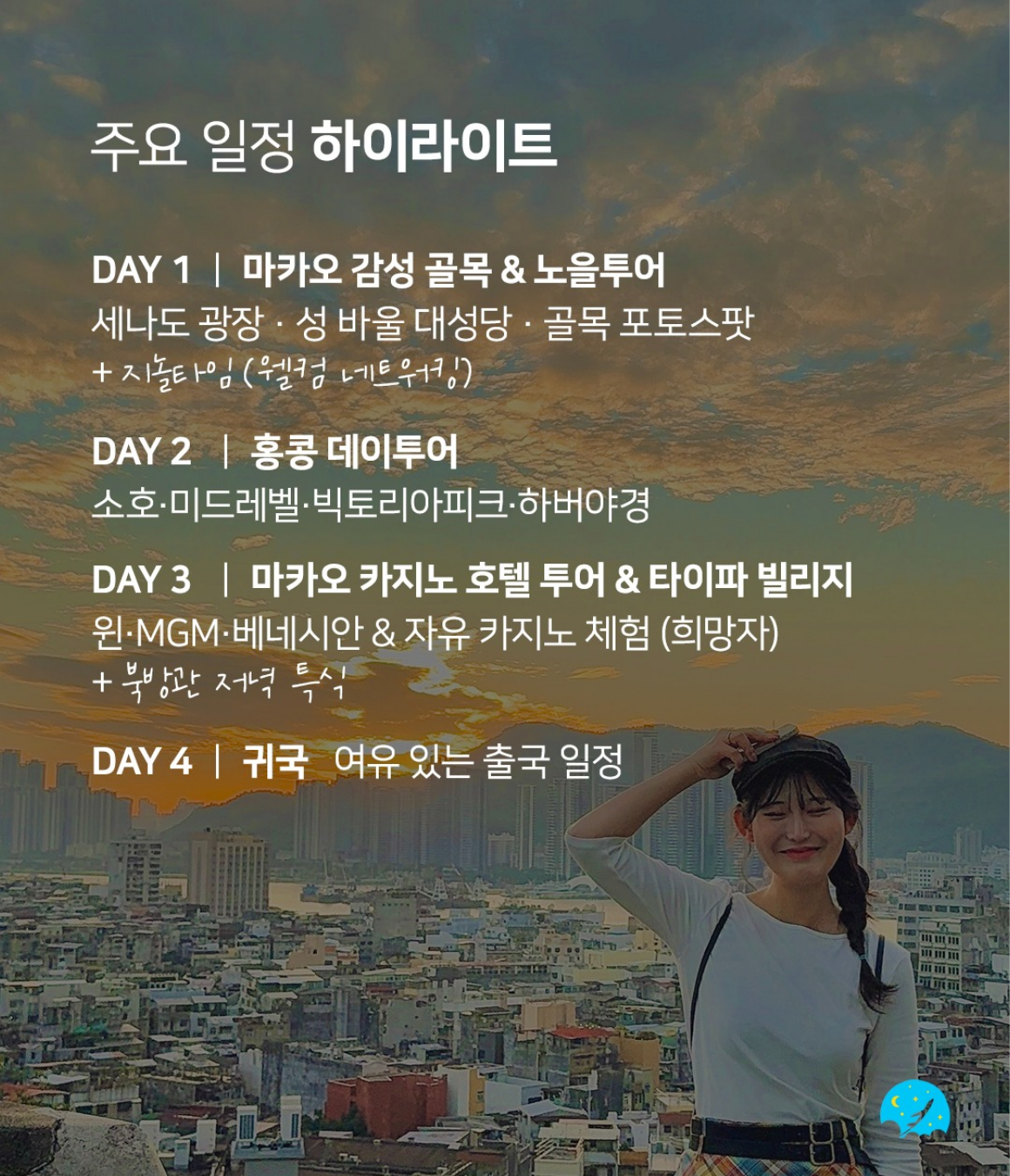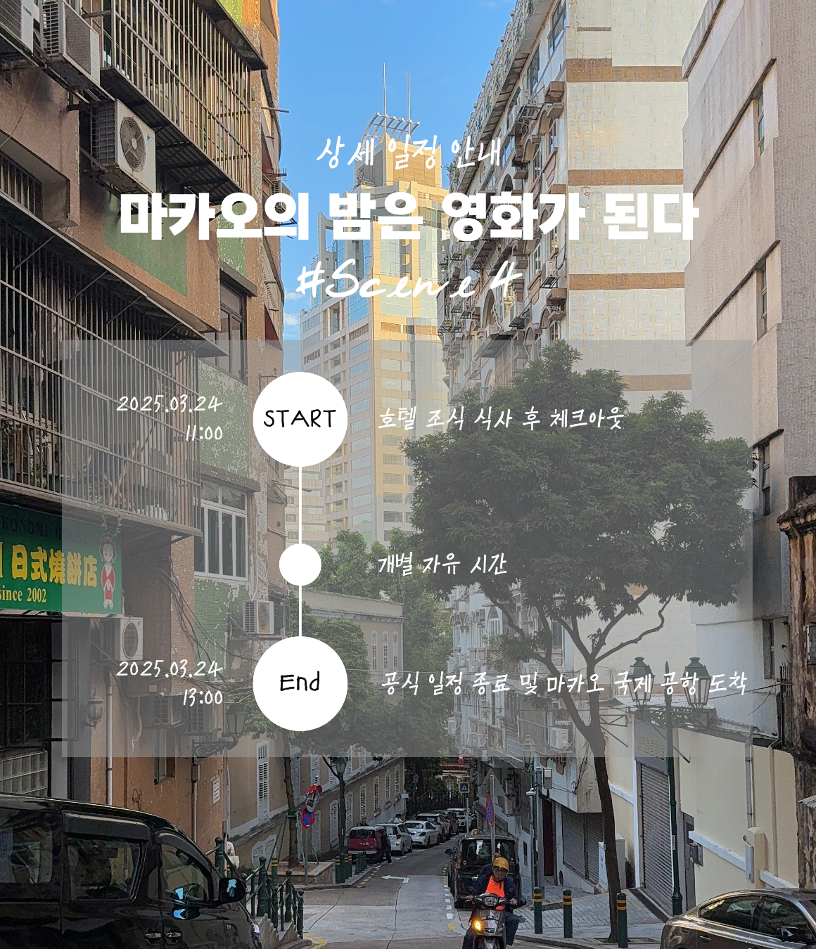 - 4일차: 단체 샌딩 시간 이후, 마카오 출발이 13:00 이후인 항공편 이용