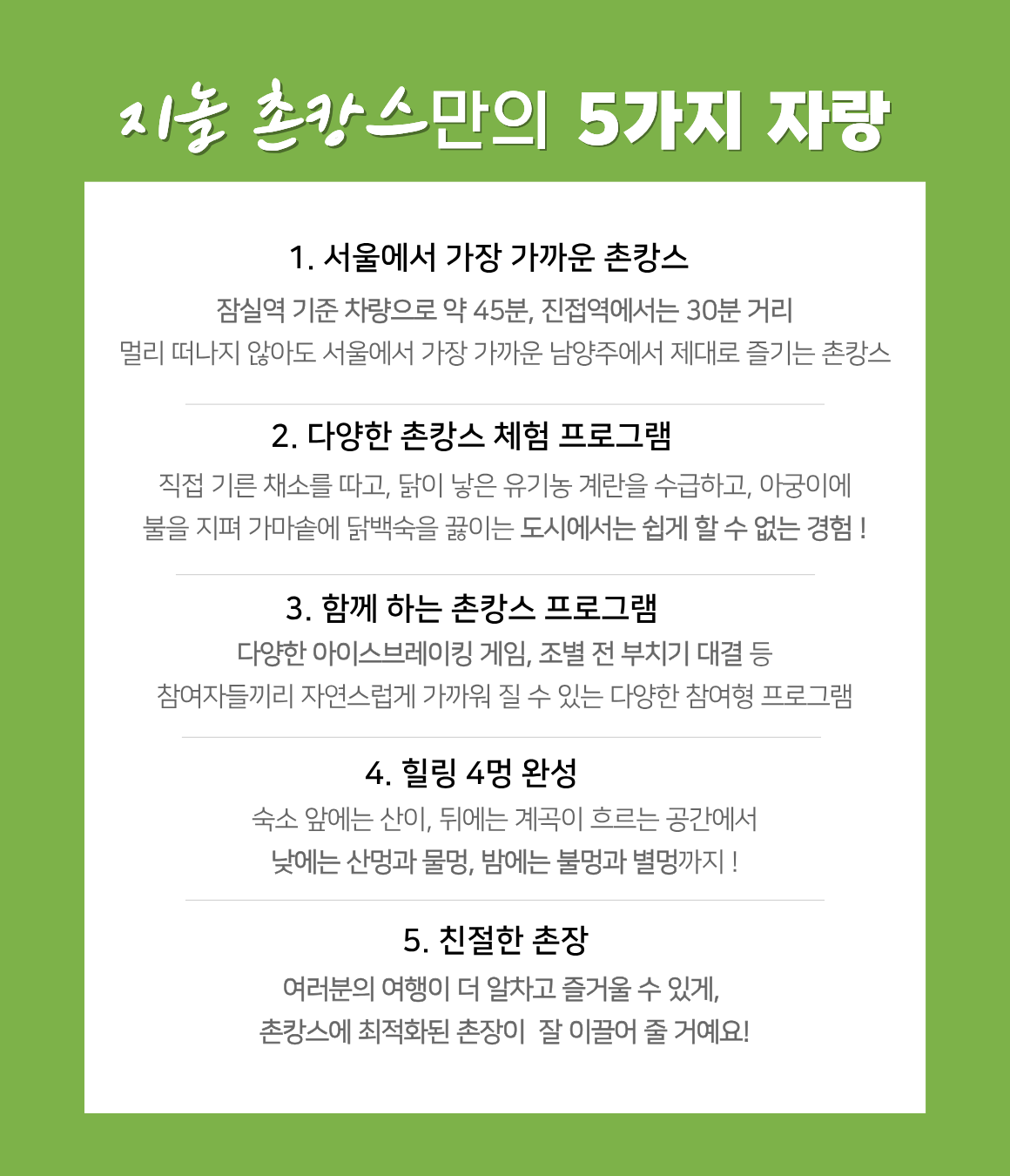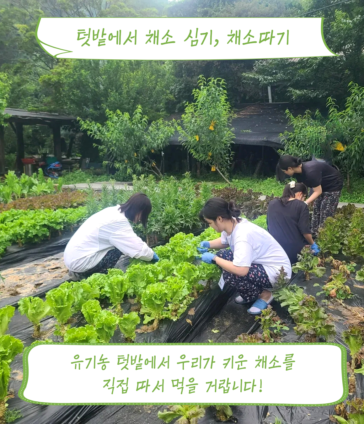 숙소 내에서 진행하는 메인프로그램, 유기농자급자족 촌캉스 체험은 모두 진행합니다.