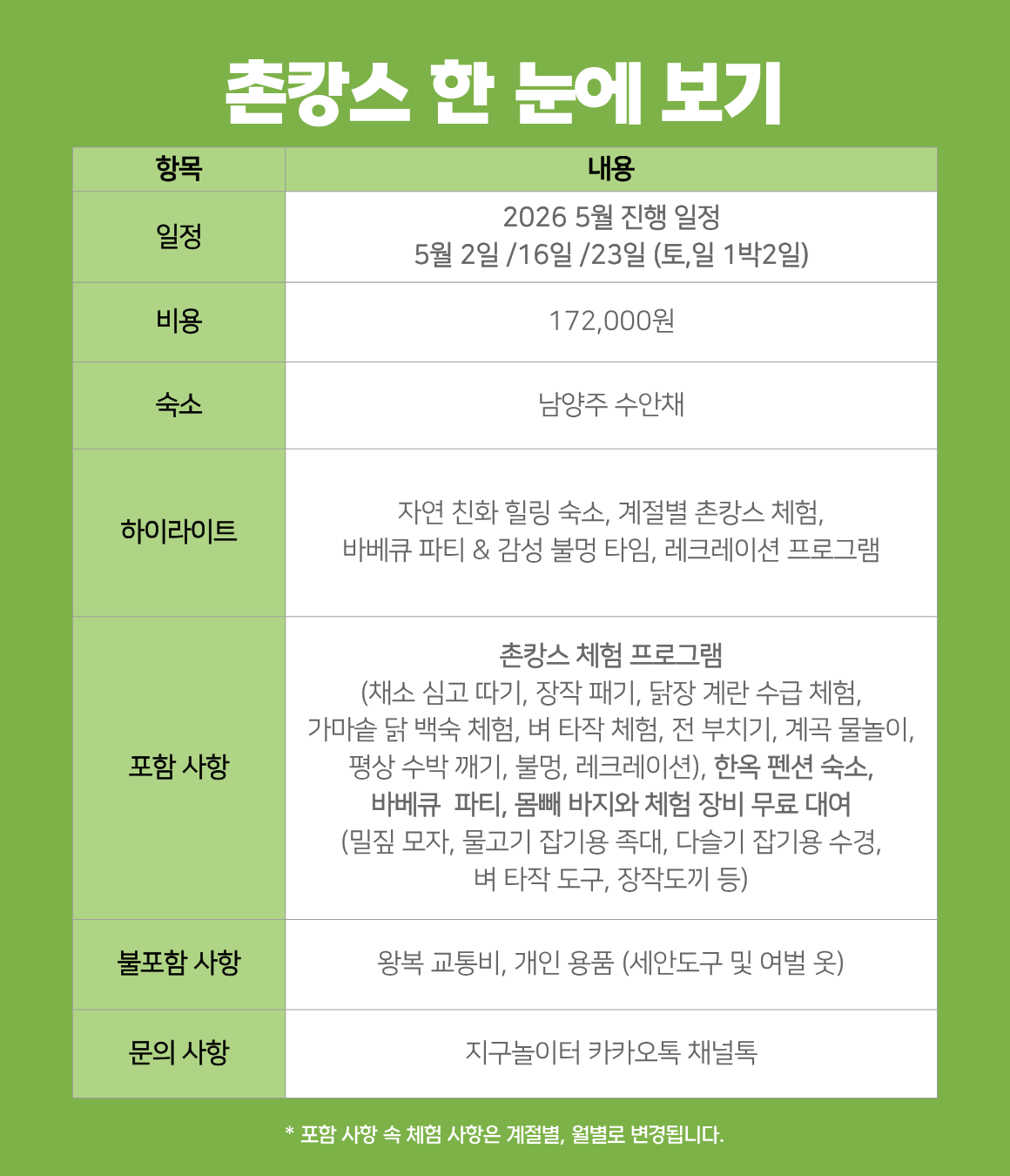 🌾5월 예정 체험🥬